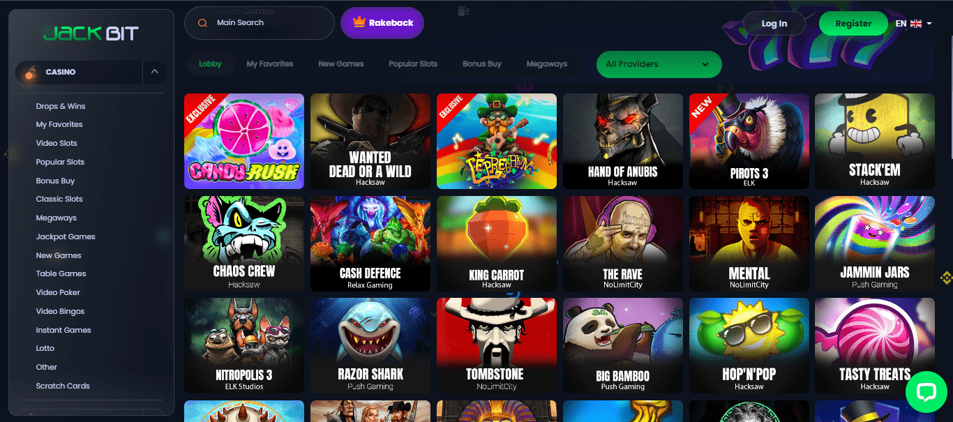 One of the newest, fully cryptocurrency-focused casinos for 2022 is JackBit, which skillfully combines an extensive sportsbook area with an enormous game library with over 6800 games. It is run by Ryker BV, a firm permitted to operate in Curacao that also owns and operates a few other brands, such as FreshBet and 20Bets, which we have already reviewed. The website design is typical of cryptocurrency casinos; it has an interactive layout in black with neon logos of the most prominent cryptocurrencies floating around and the gaming areas front and center.